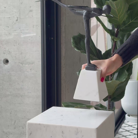 Escultura de hierro y base de mármol griego.esta pieza simboliza el balance y la calma. Ideal para una consola o recibidor.
