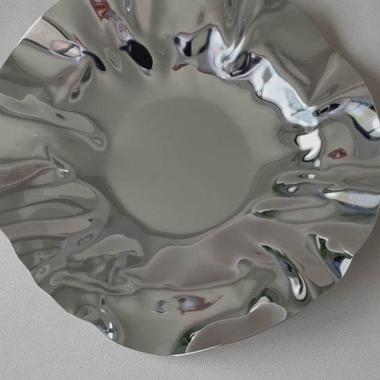 Fuente Circular de acero inoxidable color plateado. Ideal para servir o armar un centro de mesa.