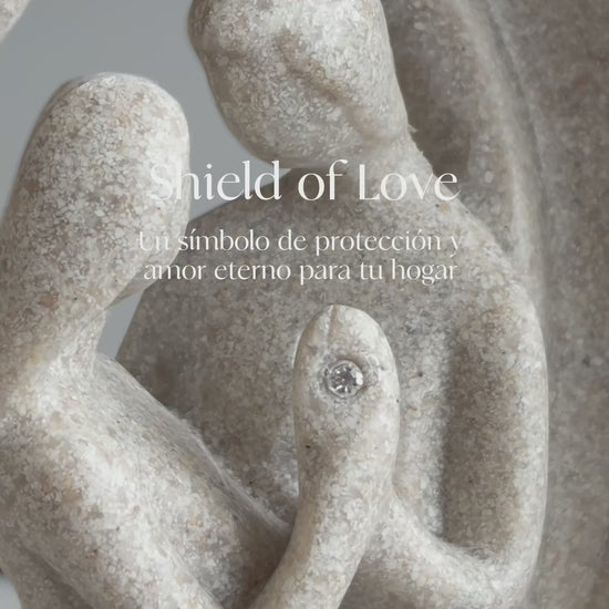 Escultura de ángel tallada en resina. Esta pieza representa la protección y amor eterno simbolizado en una piedra brillante.